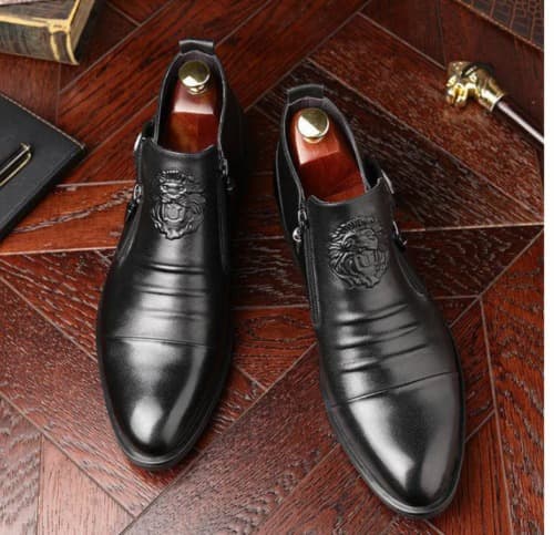 Augmentez votre style avec ces Bottes à Cheville en Cuir avec Double Fermeture Éclair Latérale et Bouts Pointus pour Hommes. Ces bottes allient sophistication et détails avant-gardistes, ce qui en fait un choix polyvalent pour tout homme à la pointe de la mode.